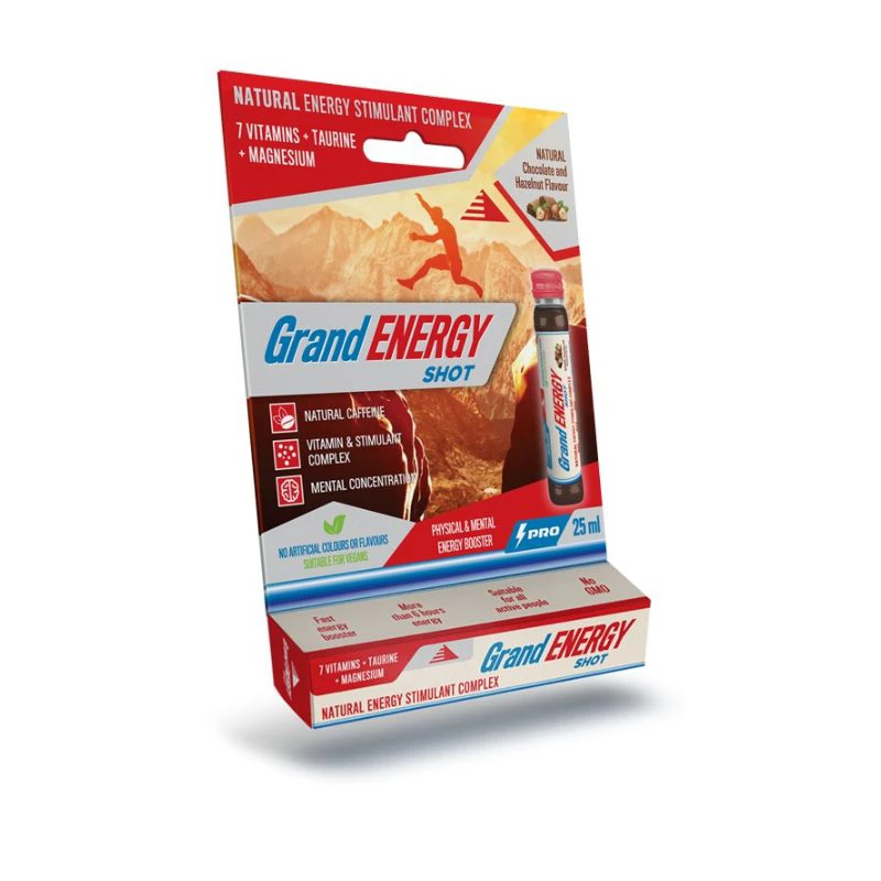 Immuno Grand energy shot je energetski napitak koji utiče na imunološki sistem i sadrži: taurin, prirodni biljni kofein, 7 vitamina B grupe (Riboflavin B2, Niacin B3, Pantotenska kiselina B5, vitamin B6, Biotin B7, Folna kiselina B9, vitamin B12), ekstrakt žen-šena, ekstrakt kakaoa, magnezijum u obliku magnezijum-citrata. Zbog svog prirodnog sastava je namenjen: sportistima, studentima, rekreativcima, vozačima od 18 do 60 godina, svim aktivnim i radnim ljudima koji osećaju pad energije.