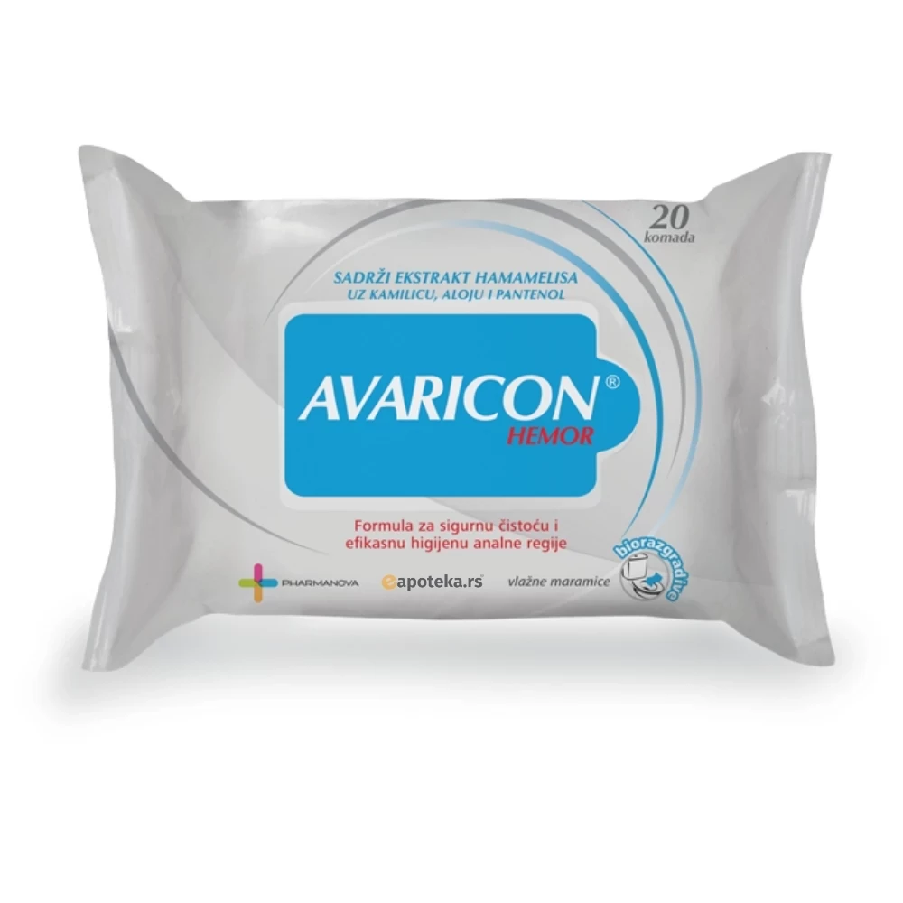 Avaricon hemor vlažne maramice omogućavaju higijenu i olakšanje tegoba osetljive i iritirane kože i sluznice analne regije.Zahvaljujući mekoj teksturi i posebno razvijenoj formuli Avaricon® hemor vlažne maramice pružaju osećaj čistoće i svežine tokom celog dana. Ekstrakt kamilice, bisabolol i hidratantna emulzija neguju osetljivu kožu analne regije i štite je od isušivanja. Ekstrakt hamamelisa ima umirujuće dejstvo na kožu. Preporučuju se za upotrebu u svim situacijama kada je Vašoj koži, posebno analne regije, potrebna dodatna higijena.