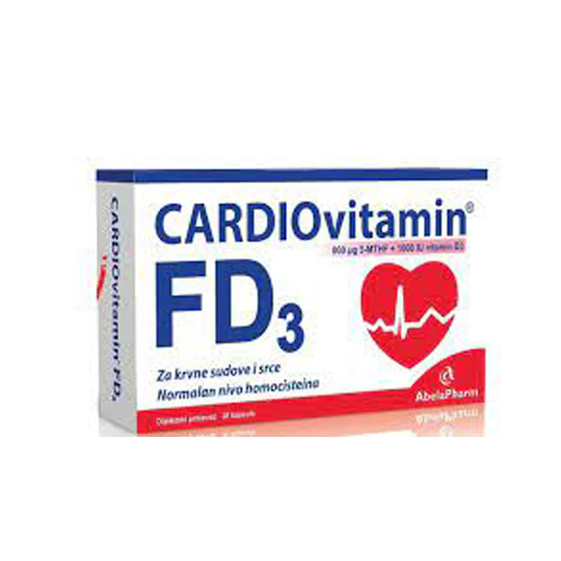 CARDIOVITAMIN FD3 sadrži optimalnu kombinaciju vitamina koji deluju na smanjenje homocisteina u krvi.Homocistein je aminokiselina koja se stvara u organizmu . Povišen nivo homocisteina u krvi direktno oštećuje zid krvnog suda.